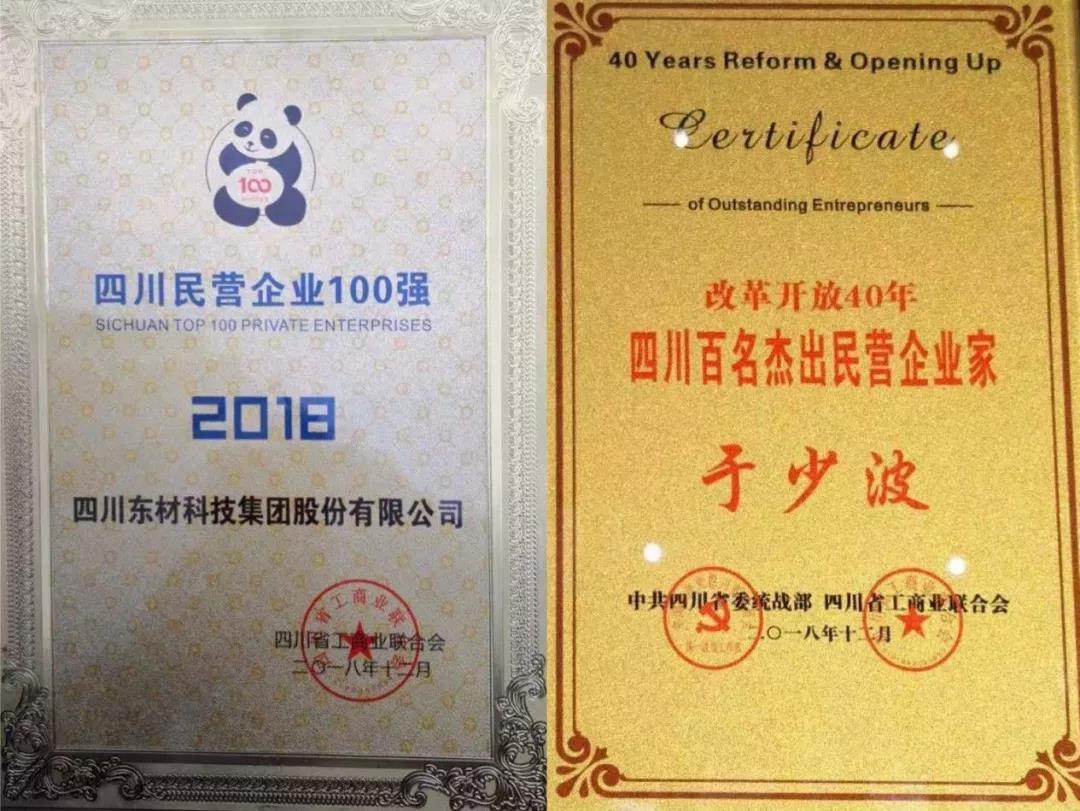 熱烈祝賀東材科技黨委書記、董事長于少波榮獲“改革開放40年四川百名杰出民營企業家”光榮稱號